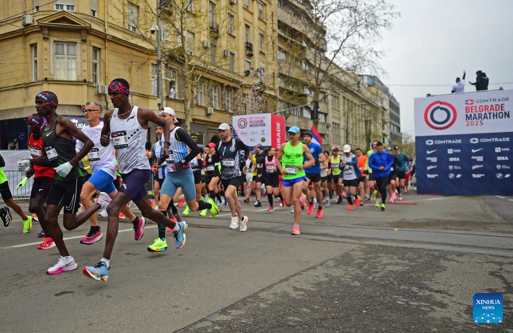 Competitors start at the 38th Belgrade marathon in Belgrade, Serbia, on April 6, 2025. (Photo by Predrag Milosavljevic/Xinhua)