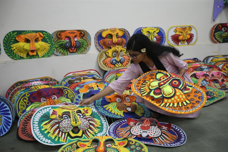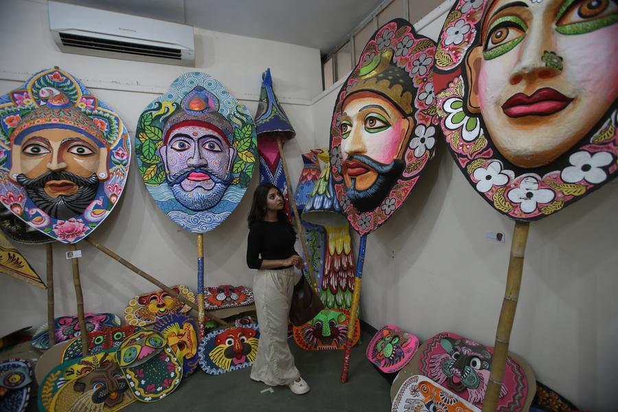 A student from the Faculty of Fine Art at Dhaka University looks at masks for celebration of the upcoming Bengali New Year in Dhaka, Bangladesh, April 6, 2025. (Habibur Rahman/Xinhua)