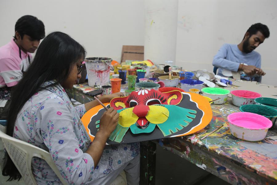 A student from the Faculty of Fine Art at Dhaka University arranges masks for celebration of the upcoming Bengali New Year in Dhaka, Bangladesh, April 6, 2025. (Habibur Rahman/Xinhua)Students from the Faculty of Fine Art at Dhaka University color masks for celebration of the upcoming Bengali New Year in Dhaka, Bangladesh, April 6, 2025. (Habibur Rahman/Xinhua)A student from the Faculty of Fine Art at Dhaka University paints a mask for celebration of the upcoming Bengali New Year in Dhaka, Bangladesh, April 6, 2025. (Habibur Rahman/Xinhua)■