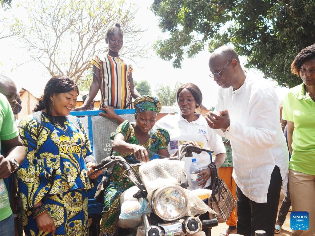 Raouf Mazou (2nd R), assistant high commissioner for operations at the United Nations High Commissioner for Refugees (UNHCR), stands with refugee returnees and members of their host community during a visit in Baoro, Central African Republic, March 26, 2025. (Ying Hu/UNHCR/Handout via Xinhua)