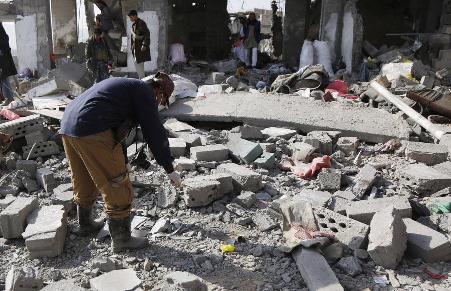 SANAA, April 7 (Xinhua) -- Following deadly U.S. airstrikes on Yemen's capital Sanaa Sunday night, the sun rose over a pile of rubble, broken mirrors, charred beds, and the remains of a doll, all that belonged to a family whose house was heavily hit.