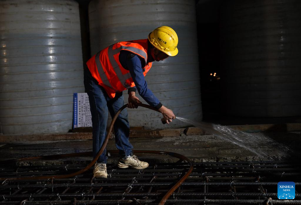 A staff member works at the construction site of the Pingwang Bridge in Suzhou, east China's Jiangsu Province, April 7, 2025. The Pingwang Bridge, a project of the east part of the Chang-Hu-Shen (Changxin-Huzhou-Shanghai) navigation channel (Jiangsu section) improvement project, is under construction. (Xinhua/Ji Chunpeng)