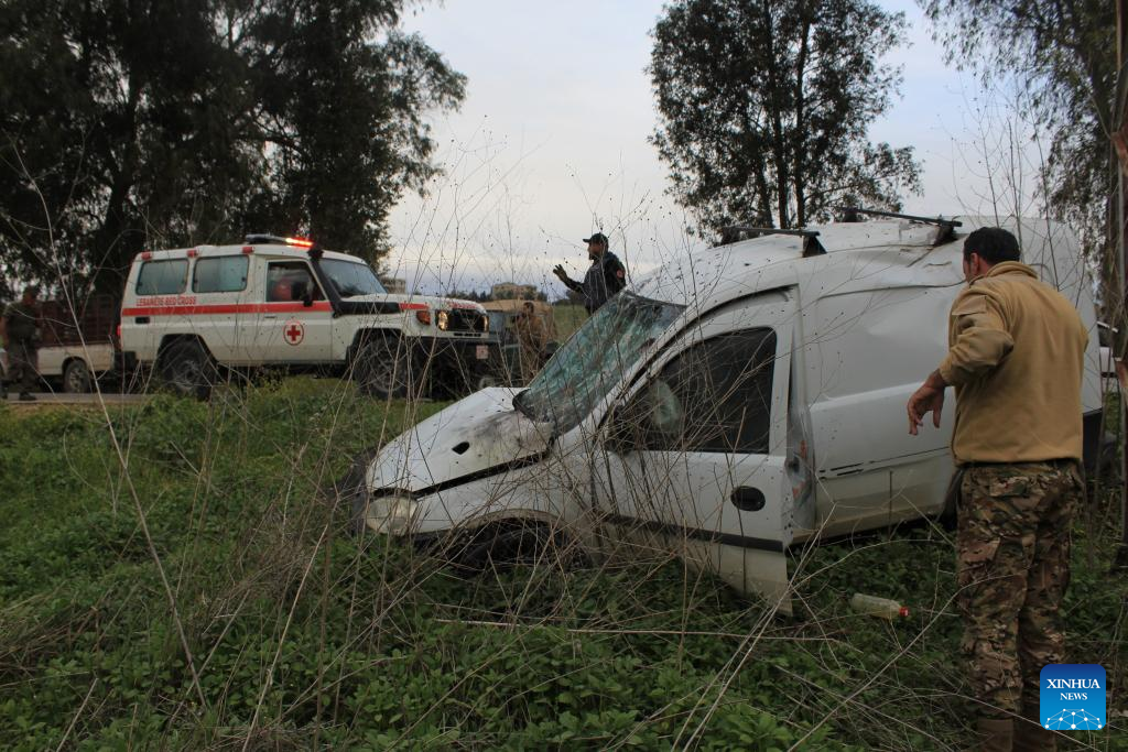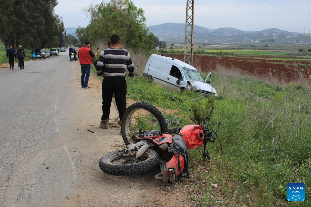 In one strike targeting the Dardara road, "two Syrian nationals riding a motorcycle were killed, and a Lebanese citizen was injured," Lebanon's official National News Agency reported. (Photo by Taher Abu Hamdan/Xinhua)