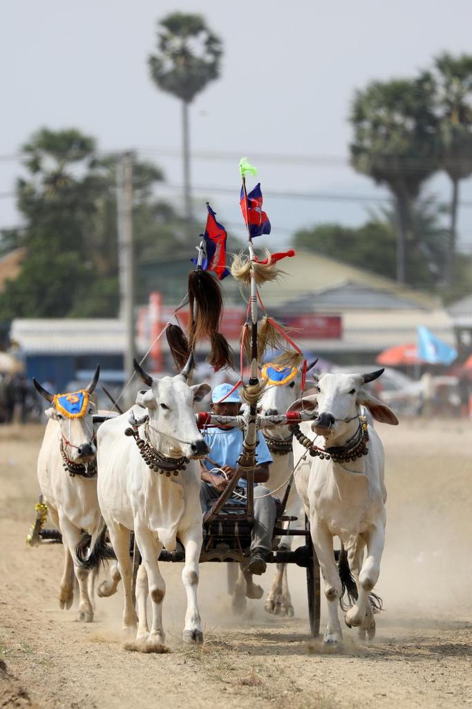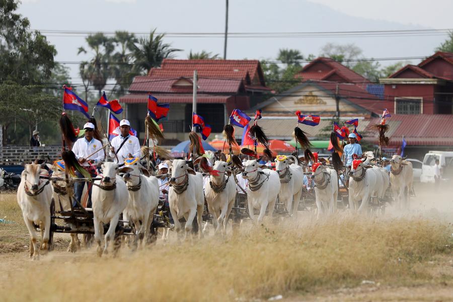 Convened in Chbar Mon town's Snor I village, roughly 50 km west of the capital Phnom Penh, contenders raced their ox-carts pulled by two oxen in a 1.3 km-meter-dirt track, as hundreds of spectators enthusiastically watched and cheered on the winners of the race.