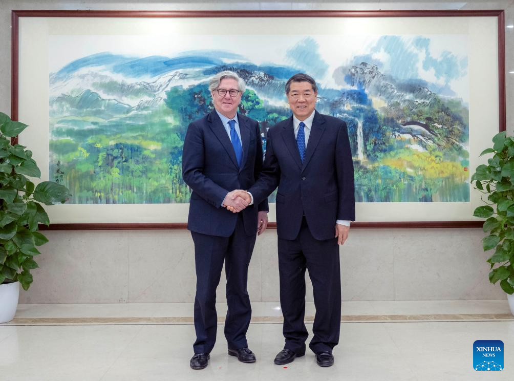BEIJING, April 8 (Xinhua) -- Senior Chinese official He Lifeng met with John Thornton, chair emeritus of the U.S. Brookings Institution, in Beijing on Tuesday. The two sides exchanged views on China-U.S. economic and trade relations and macroeconomic situation.