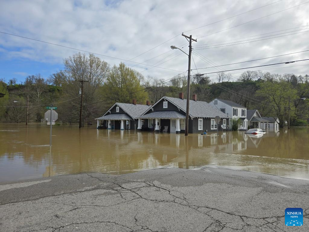 Photo taken on April 7, 2025 shows a waterlogged area in Frankfort, Kentucky, the United States. (Photo by Wang Changzheng/Xinhua)