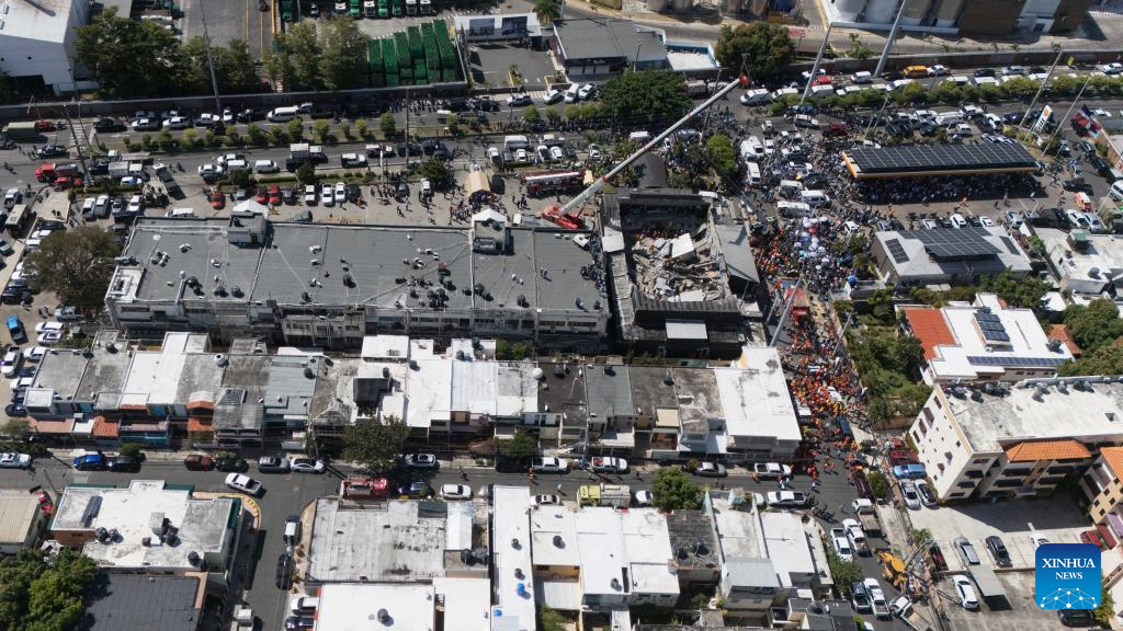 Aerial photo taken on April 8, 2025 shows the site of a nightclub roof collapse in Santo Domingo, the Dominican Republic. (Str/Xinhua)