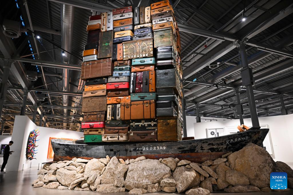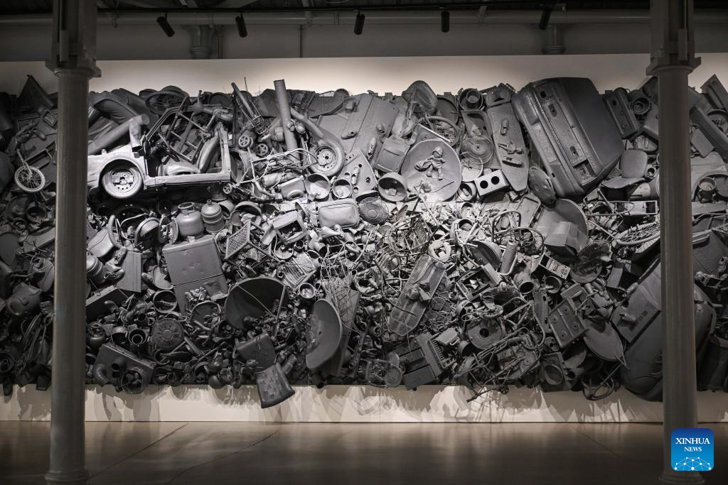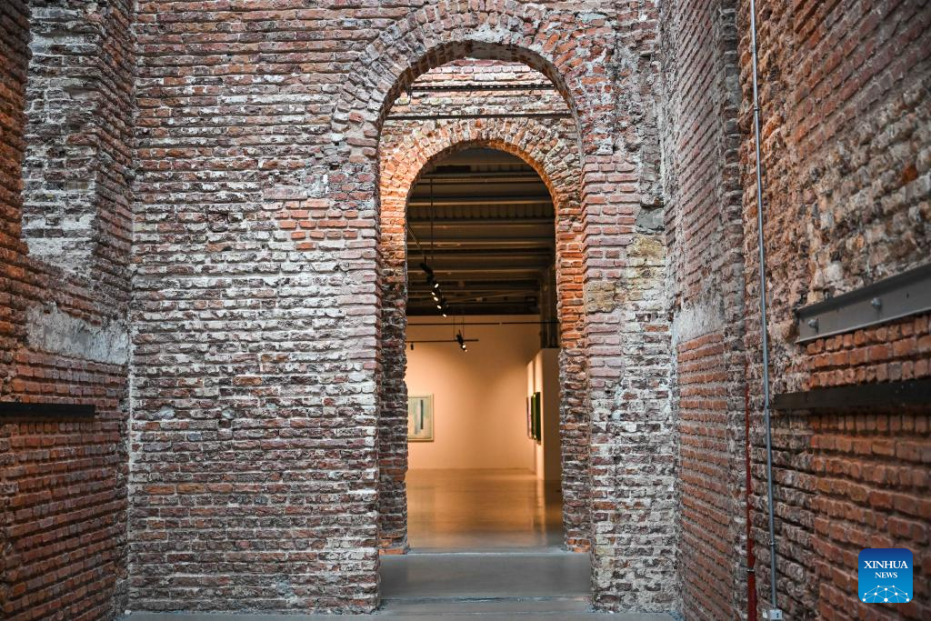 This photo taken on April 8, 2025 shows an exhibit at ArtIstanbul Feshane cultural park in Istanbul, Türkiye. Located on the shore of the Golden Horn, ArtIstanbul Feshane in Istanbul, Türkiye, was once a textile factory with a history of nearly 200 years. After renovation in 2023, it became a cultural park integrating a library and art exhibition. (Xinhua/Liu Lei)
