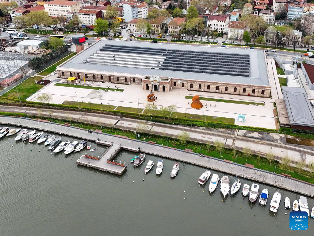 An aerial drone photo taken on April 8, 2025 shows a view of ArtIstanbul Feshane cultural park in Istanbul, Türkiye. Located on the shore of the Golden Horn, ArtIstanbul Feshane in Istanbul, Türkiye, was once a textile factory with a history of nearly 200 years. After renovation in 2023, it became a cultural park integrating a library and art exhibition. (Xinhua/Liu Lei)
