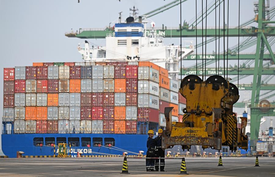 China's research icebreaker Xuelong, or Snow Dragon, berths at a base dock in Shanghai, east China, April 8, 2025. China's research icebreaker Xuelong arrived in Shanghai on Tuesday, marking the completion of key missions in the country's 41st Antarctic expedition, according to a press conference held on Tuesday. (Xinhua/Zhang Jiansong)Workers check a piece of equipment at a container terminal of Tianjin Port in north China's Tianjin, April 8, 2025. Tianjin Port handled over 5.71 million twenty-foot equivalent units (TEUs) of containers in the first quarter of 2025, up 5.6 percent year on year. The port saw its cargo throughput reach 119 million tonnes during the period, up 1.4 percent year on year. (Xinhua/Zhao Zishuo)A staff member adjusts the facial expression of a humanoid robot in Shenzhen, south China's Guangdong Province, March 27, 2025. (Xinhua/Liang Xu)Citizens take photos of cherry blossoms in a park in Wenzhou City, east China's Zhejiang Province, April 7, 2025. (Photo by Liu Jili/Xinhua)A trader works on the floor of the New York Stock Exchange in New York, the United States, on April 8, 2025. U.S. stocks closed sharply lower on Tuesday. The Dow Jones Industrial Average dropped 320.01 points, or 0.84 percent, to close at 37,645.59. The S&P 500 fell 79.48 points, or 1.57 percent, to 4,982.77, narrowly avoiding a bear market. The tech-heavy Nasdaq Composite plunged 335.35 points, or 2.15 percent, to 15,267.91. (Photo by Michael Nagle/Xinhua)People gather near the site of a nightclub roof collapse in Santo Domingo, the Dominican Republic, on April 8, 2025. At least 27 people were killed Tuesday when the roof of the Jet Set nightclub collapsed in Santo Domingo, authorities confirmed. (Str/Xinhua)This photo taken on March 29, 2025 shows a lemur leaping from one tree to another at the Andasibe-Mantadia National Park in Madagascar. (Xinhua/Li Yahui)Shao Ziqin (1st L) of China scores with a header during the match between China and Thailand at 2025 CFA Team China International Women's Football Tournament Yongchuan in Chongqing, southwest China, April 8, 2025. (Xinhua/Chen Cheng)■