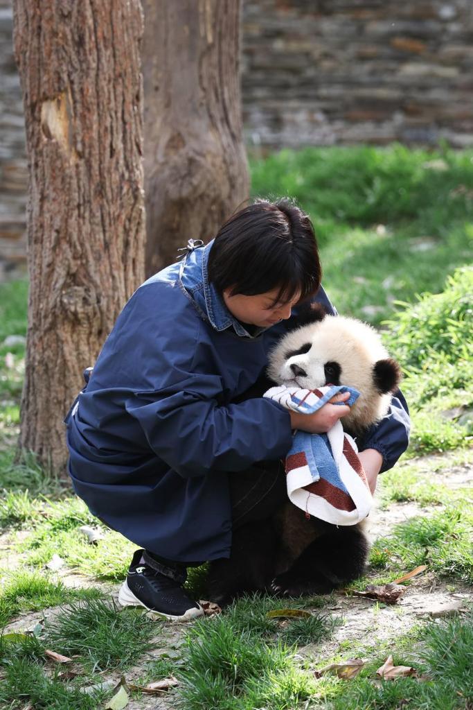 Giant panda keeper Li Rong interacts with panda cubs while feeding them at the Shenshuping giant panda base of Wolong National Nature Reserve in southwest China's Sichuan Province, March 27, 2025. (Xinhua/Xu Bingjie)Giant panda keeper Li Rong wipes the face of a panda cub after feeding milk at the Shenshuping giant panda base of Wolong National Nature Reserve in southwest China's Sichuan Province, March 27, 2025. (Xinhua/Meng Tao)Giant panda keeper Li Rong feeds bamboo shoots to a panda cub at the Shenshuping giant panda base of Wolong National Nature Reserve in southwest China's Sichuan Province, March 27, 2025. (Xinhua/Xu Bingjie)A giant panda cub rests on a tree at the Shenshuping giant panda base of Wolong National Nature Reserve in southwest China's Sichuan Province, March 27, 2025. (Xinhua/Meng Tao)A giant panda cub rests on a tree at the Shenshuping giant panda base of Wolong National Nature Reserve in southwest China's Sichuan Province, March 28, 2025. (Xinhua/Li Xiao)A giant panda cub has fun on a tree at the Shenshuping giant panda base of Wolong National Nature Reserve in southwest China's Sichuan Province, March 28, 2025. (Xinhua/Xin Mengchen)