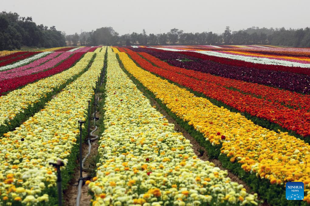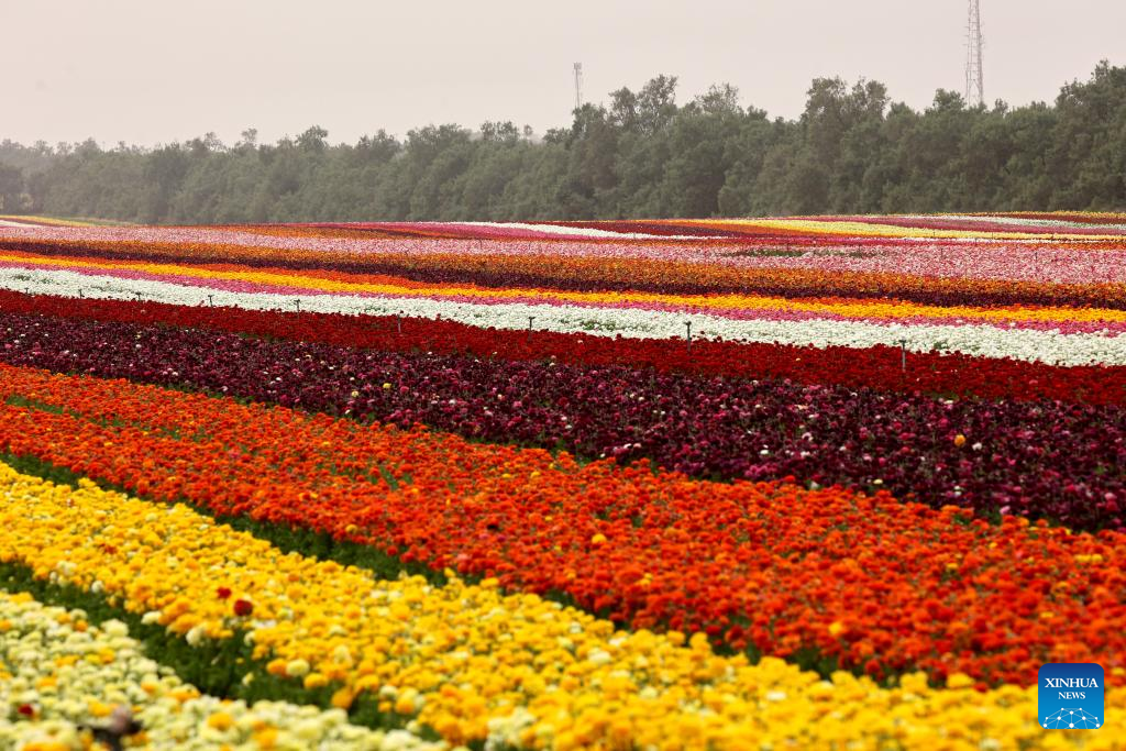 This photo taken on April 8, 2025 shows buttercup fields in Kibbutz Holit, Israel. (Photo by Gil Cohen Magen/Xinhua)