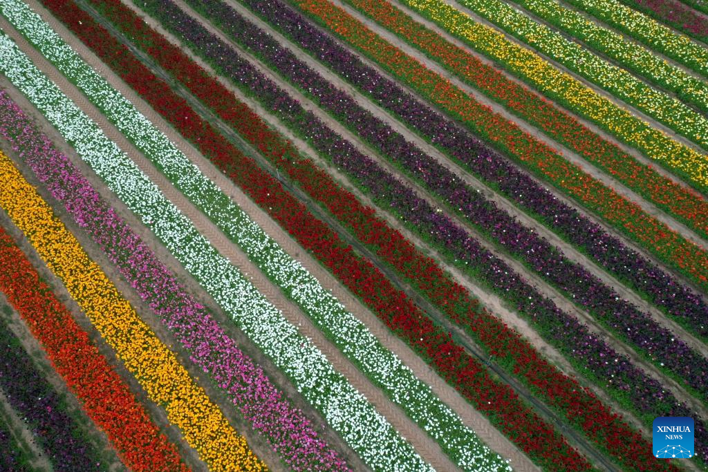 An aerial drone photo taken on April 8, 2025 shows buttercup fields in Kibbutz Holit, Israel. (Photo by Gil Cohen Magen/Xinhua)