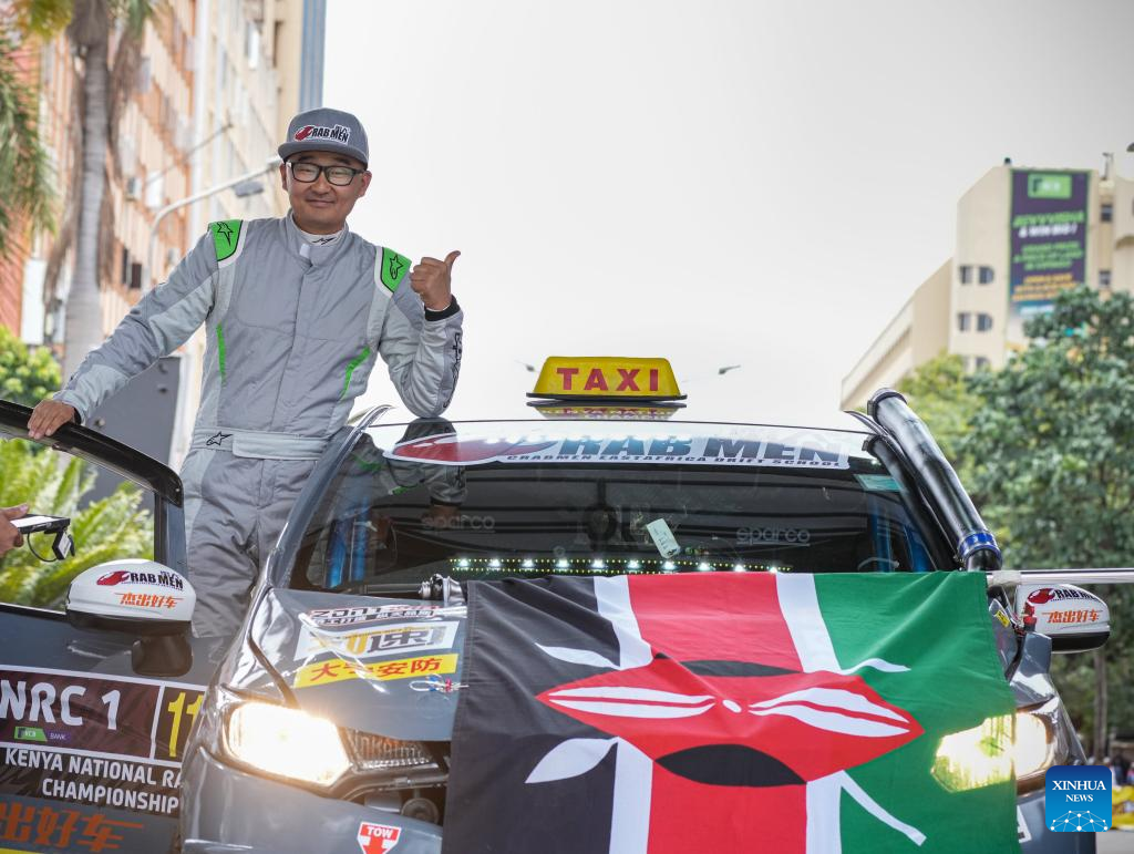 Lu Jin poses for a photo at the starting point during the ARC/KNRC race at the Kenya Safari Rally, the third stop of the 2025 FIA World Rally Championship, in Nairobi, Kenya, March 20, 2025. (Xinhua/Li Yahui)