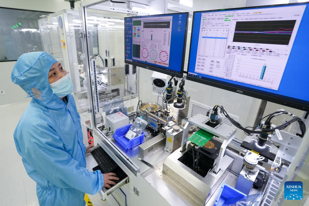 A staff member operates at a workshop at SinoVision SensTech in Wuxi, east China's Jiangsu Province, March 31, 2025. (Xinhua/Li Bo)