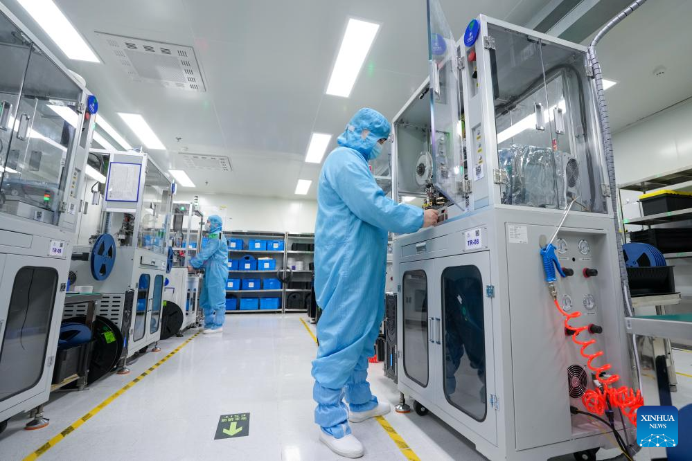 Staff members operate at a workshop at SinoVision SensTech in Wuxi, east China's Jiangsu Province, March 31, 2025. (Xinhua/Li Bo)