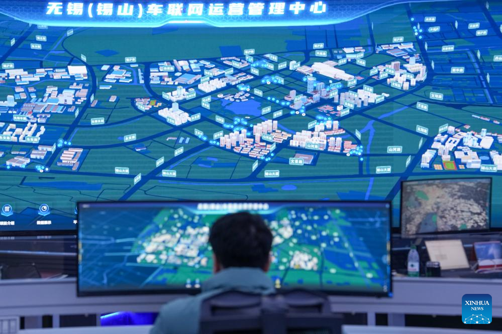 A staff member works at a car networking operation and management center in Wuxi, east China's Jiangsu Province, March 31, 2025. (Xinhua/Li Bo)