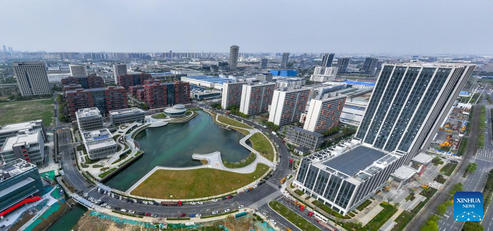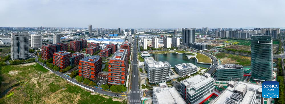 A panoramic drone photo taken on March 31, 2025 shows an eco-industrial park of intelligent connected vehicles in Wuxi, east China's Jiangsu Province. (Xinhua/Li Bo)