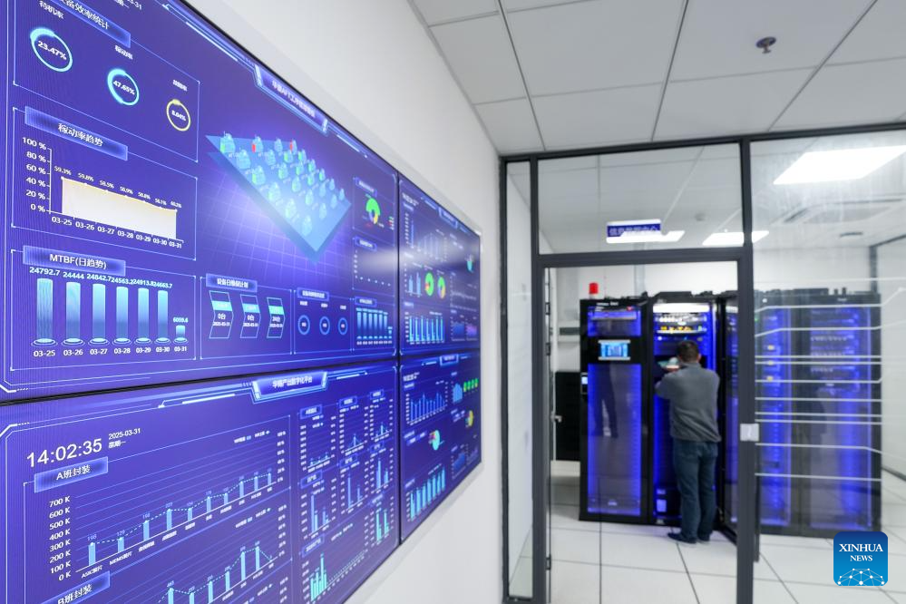 A staff member works at an information data center of SinoVision SensTech in Wuxi, east China's Jiangsu Province, March 31, 2025. (Xinhua/Li Bo)