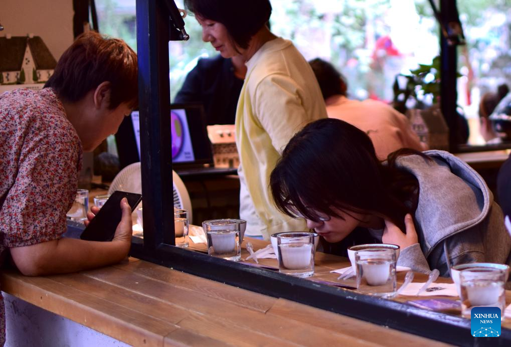 A coffee cupping activity is held at a cafe in Korla, northwest China's Xinjiang Uygur Autonomous Region, Sept. 12, 2024. From desert cafes to mountain-view lattes, China's northwest is driving a coffee transformation, blending local flavors with scenic charm to fuel a thriving "coffee+" economy. (Xinhua)