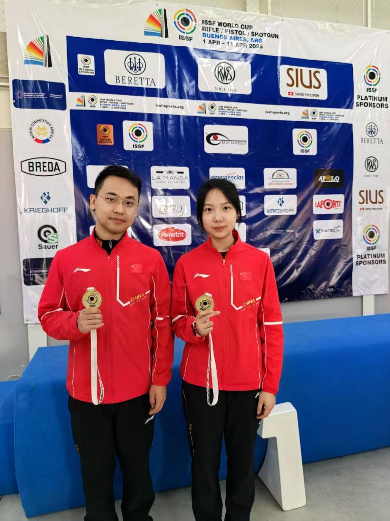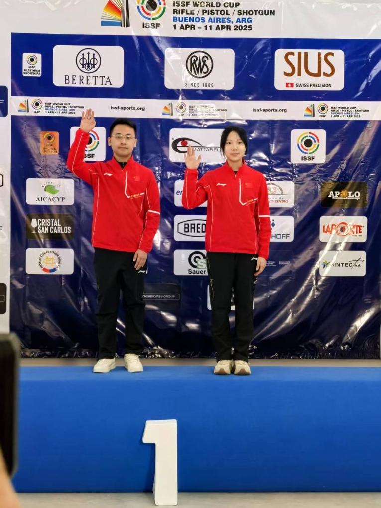 The gold came just two days after Wang had triumphed in the women's 10m air rifle individual event, marking China's fourth gold at the Buenos Aires leg of the World Cup.