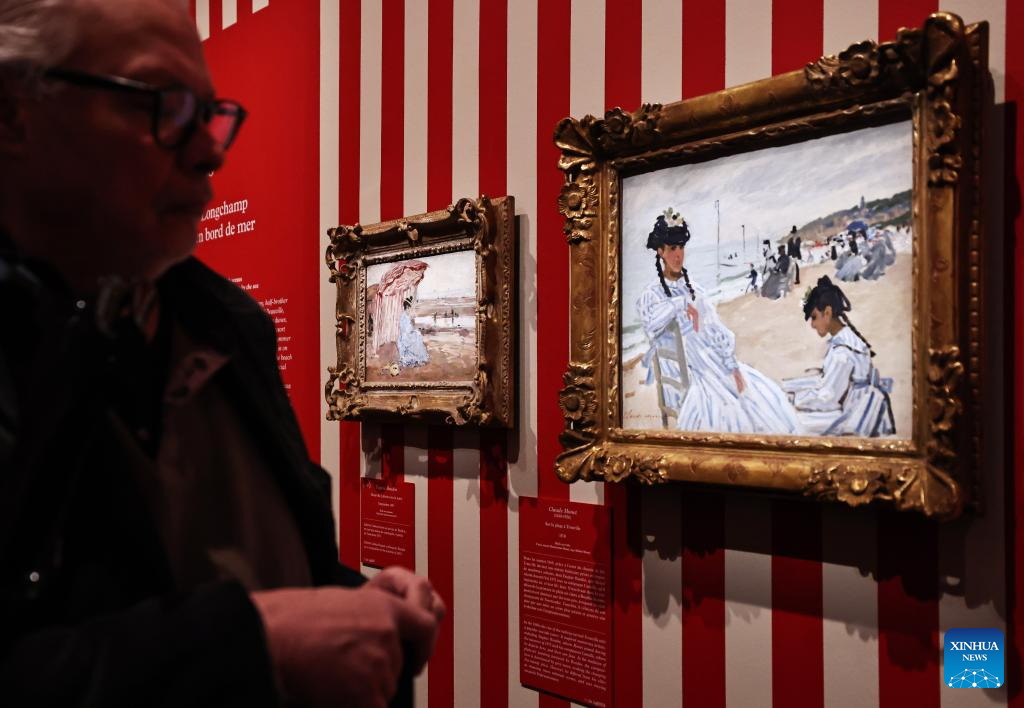 A person visits the exhibition "Eugene Boudin, father of the Impressionnisme" during a press visit at the Marmottan-Monet Museum in Paris, France, April 8, 2025. The exhibition will open to the public from April 9 to Aug. 31. (Xinhua/Gao Jing)