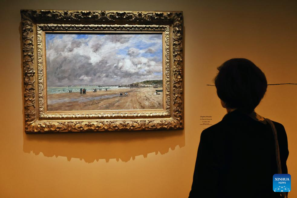 A woman visits the exhibition "Eugene Boudin, father of the Impressionnisme" during a press visit at the Marmottan-Monet Museum in Paris, France, April 8, 2025. The exhibition will open to the public from April 9 to Aug. 31. (Xinhua/Gao Jing)