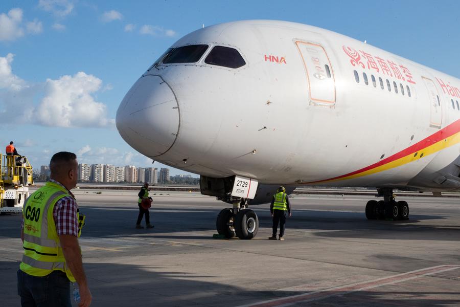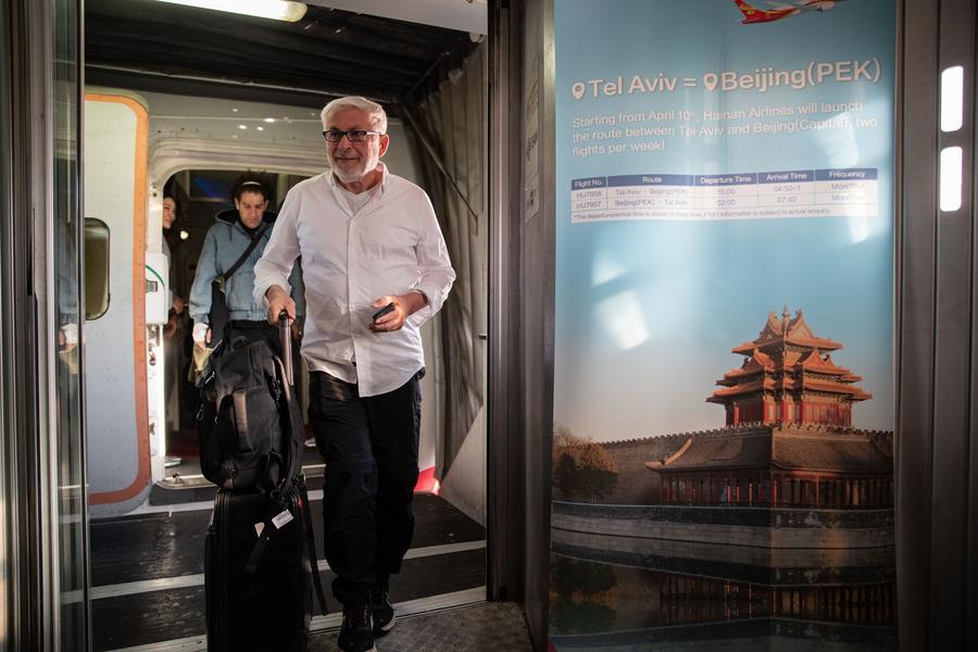 JERUSALEM, April 10 (Xinhua) -- Direct flights between Beijing and Tel Aviv resumed on Thursday, as a Hainan Airlines aircraft successfully landed at Ben-Gurion International Airport near Tel Aviv early in the morning, marking the end of an 18-month hiatus.