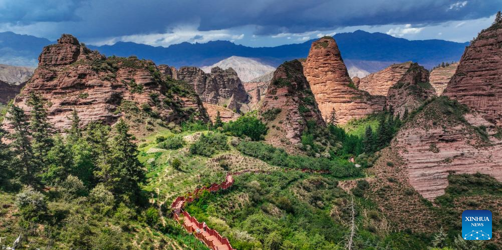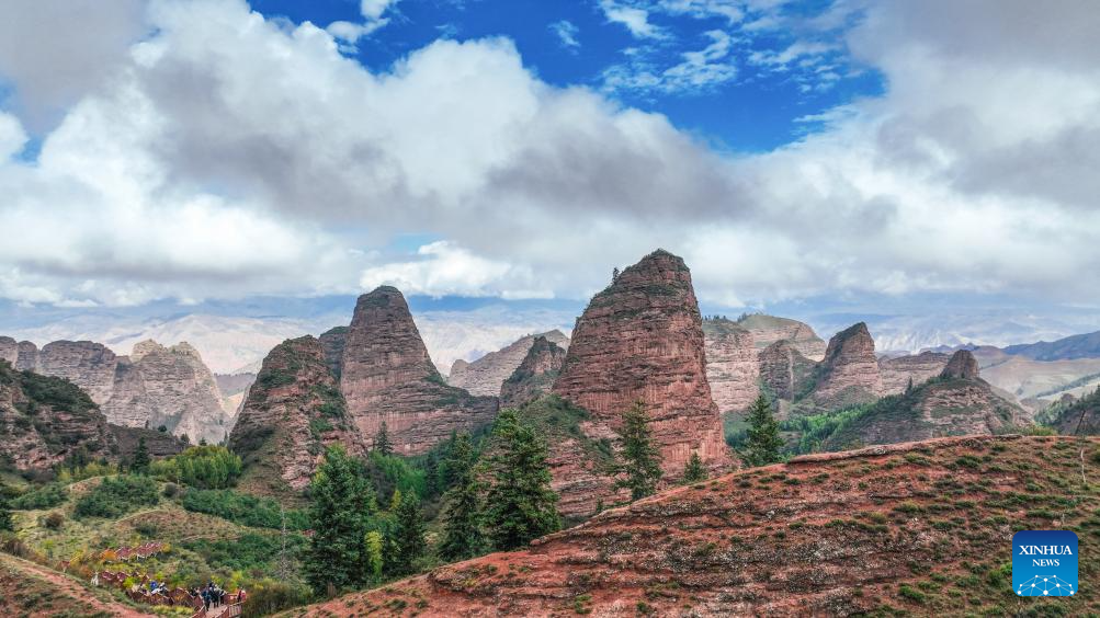 Located in northwest China's Qinghai, the Kanbula National Geopark spans roughly 3,149 square kilometers. Its striking Danxia landforms, towering peaks, hidden caves, and emerald lakes make it a prime location for geoscientific research and public science education. (Photo by Yangel Dongrub/Xinhua)