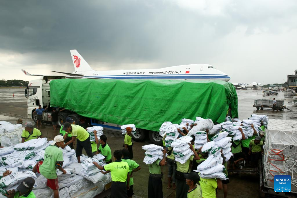 YANGON, April 11 (Xinhua) -- The sixth batch of emergency humanitarian aid dispatched by the Chinese government arrived at Yangon International Airport in Myanmar on Friday.