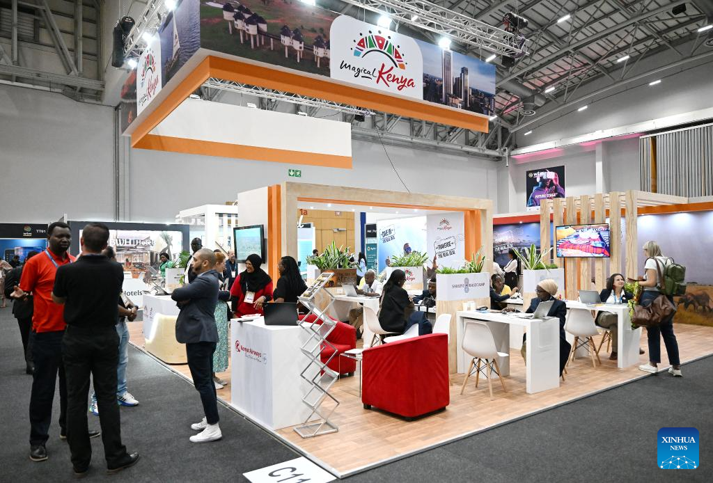 People communicate during the World Travel Market (WTM) Africa 2025 in Cape Town, South Africa, April 11, 2025. The three-day WTM Africa 2025 kicked off here on April 9, gathering approximately 5,752 tourism industry professionals from about 99 countries. (Photo by Xabiso Mkhabela/Xinhua)