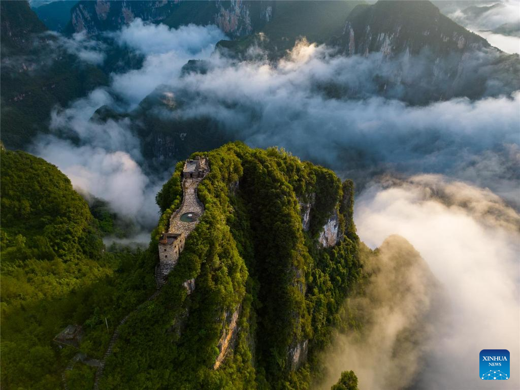 In southwest China's Chongqing, the Yunyang Geopark covers approximately 1,124 square kilometers and is renowned for its rich dinosaur fossils and dramatic karst landforms. The fossils found here are of global scientific importance, as they help fill a significant knowledge gap in the evolution of dinosaurs during the Middle Jurassic period, especially the early part of the period. (Xinhua)