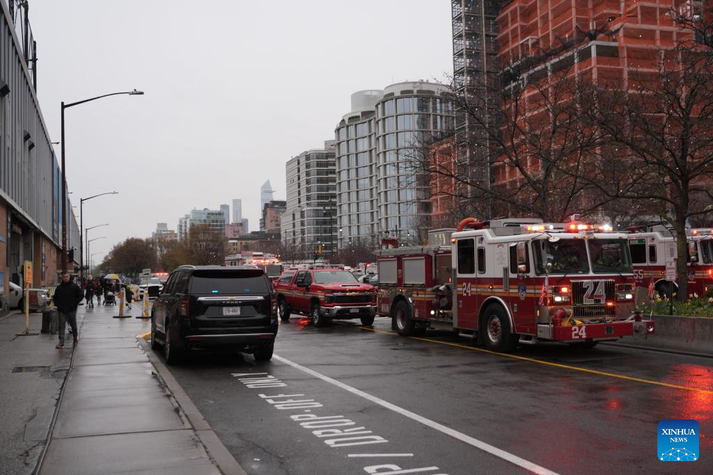 Included were one pilot, two adults and three children, according to Jessica Tisch, commissioner of the New York City Police Department (NYPD). She said four people were announced deceased on scene and another two didn't survive at hospital. (Photo by Zack Zhang/Xinhua)