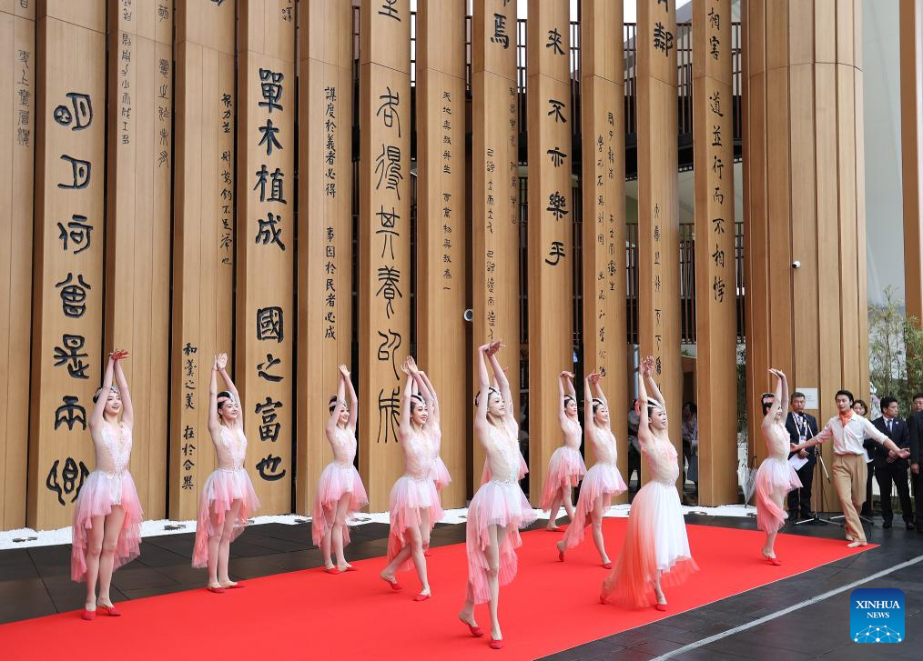 OSAKA, Japan, April 13 (Xinhua) -- The China Pavilion officially opened on Sunday at the Osaka Expo, with an opening ceremony held in front of the pavilion's main building, which is designed to resemble a traditional Chinese scroll.