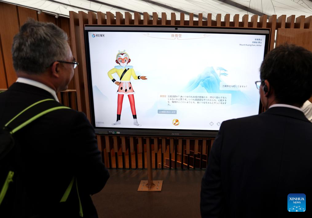 A visitor tours the China Pavilion using a mixed reality (MR) device at the Osaka Expo in Osaka, Japan, April 13, 2025. The China Pavilion officially opened on Sunday at the Osaka Expo, with an opening ceremony held in front of the pavilion's main building, which is designed to resemble a traditional Chinese scroll.