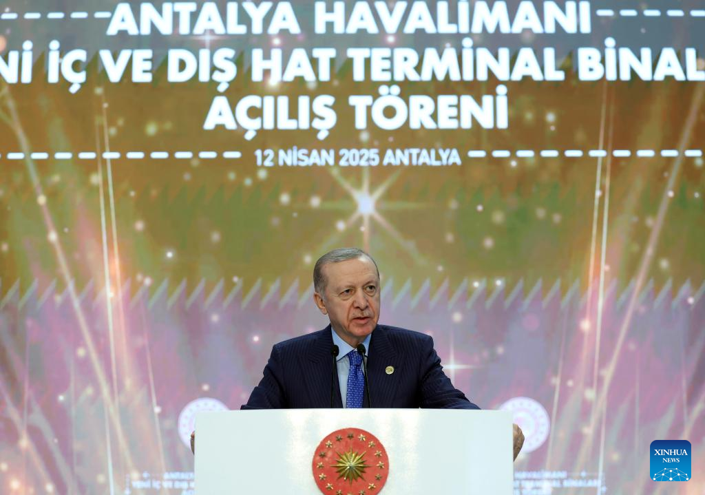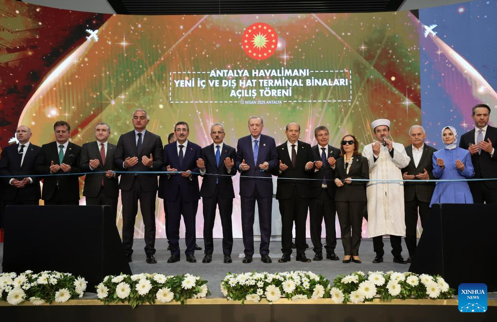 ANKARA, April 12 (Xinhua) -- Turkish President Recep Tayyip Erdogan inaugurated the newly expanded Antalya airport on Saturday, announcing it can accommodate up to 82 million passengers annually.