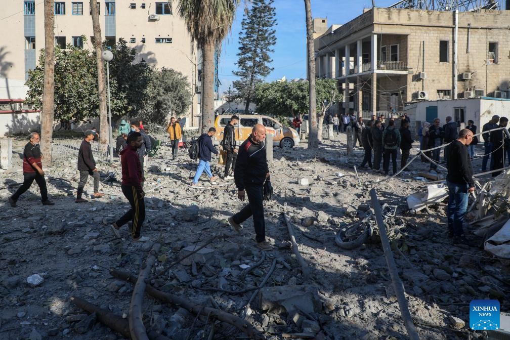 GAZA/JERUSALEM, April 13 (Xinhua) -- An Israeli airstrike hit the Al-Ahli Arab Hospital in Gaza City early Sunday, damaging key medical infrastructure and forcing the facility to shut down, according to Palestinian medical sources and eyewitnesses.