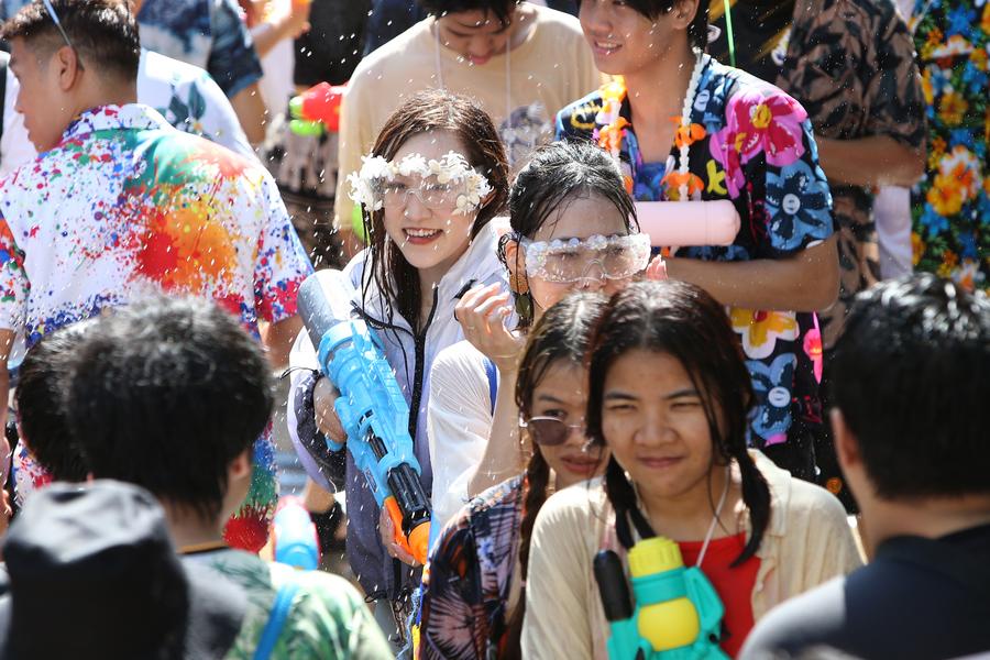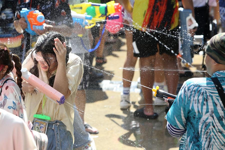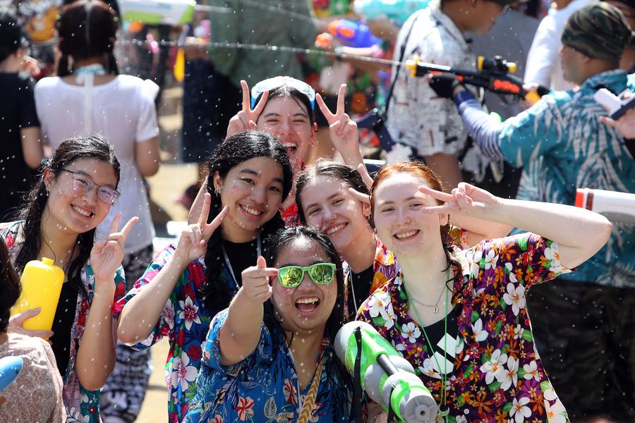 People splash water on one another in celebration of the Songkran festival in Bangkok, Thailand, April 13, 2025. (Xinhua/Rachen Sageamsak)People splash water on one another in celebration of the Songkran festival in Bangkok, Thailand, April 13, 2025. (Xinhua/Rachen Sageamsak)People splash water on one another in celebration of the Songkran festival in Bangkok, Thailand, April 13, 2025. (Xinhua/Rachen Sageamsak)People pose for selfies during a celebration of the Songkran festival in Bangkok, Thailand, April 13, 2025. (Xinhua/Rachen Sageamsak)People pose for photos during a celebration of the Songkran festival in Bangkok, Thailand, April 13, 2025. (Xinhua/Rachen Sageamsak)■
