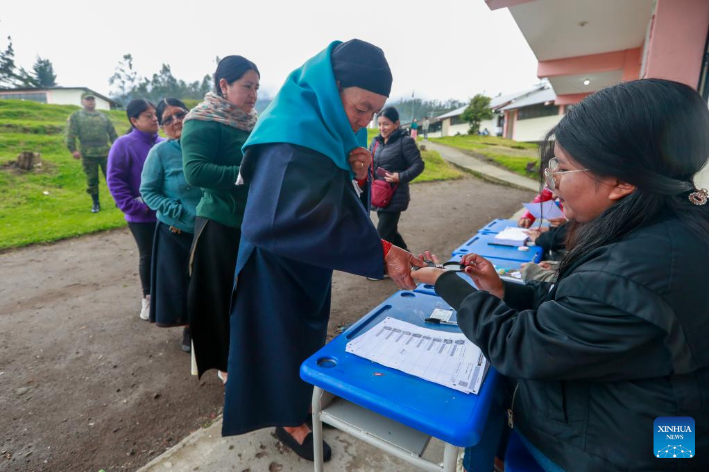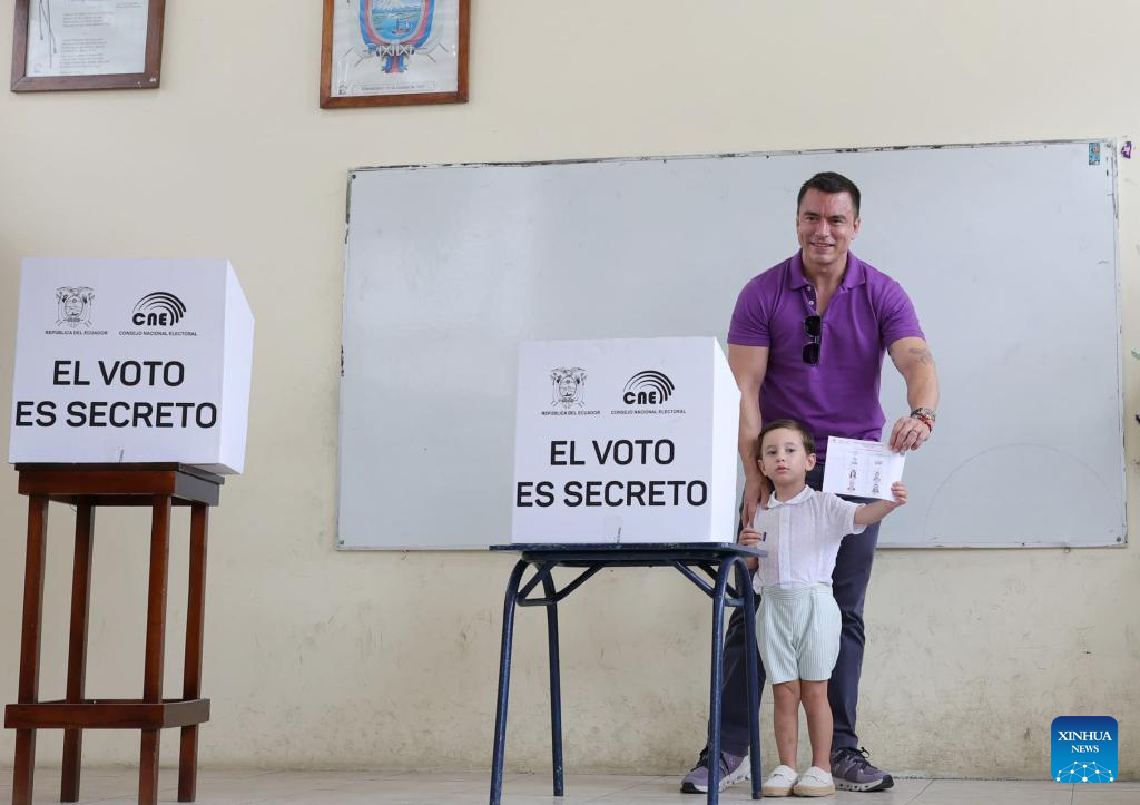 QUITO, April 13 (Xinhua) -- Daniel Noboa, the incumbent president of Ecuador, was re-elected in the second round of the presidential election held Sunday for a four-year term, according to the initial results released by the National Electoral Council (CNE).