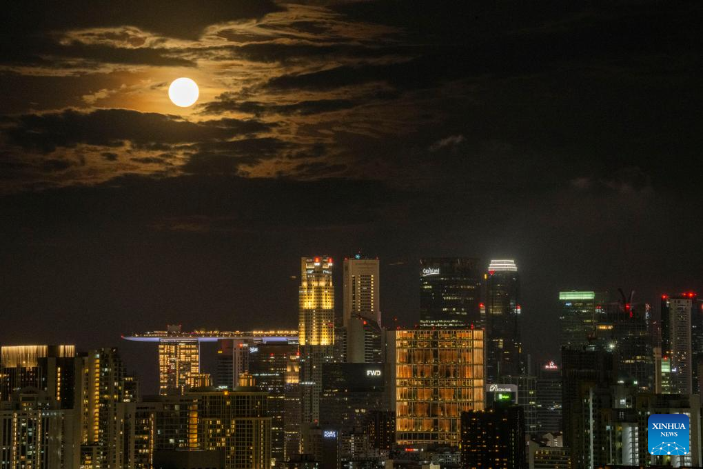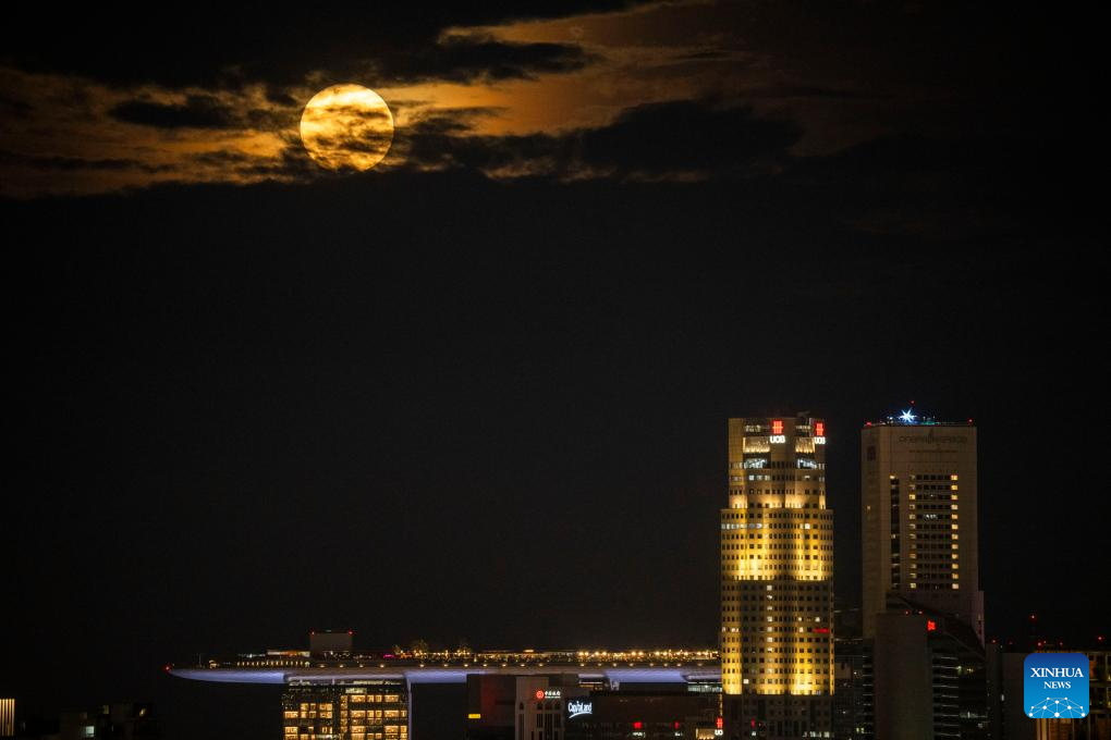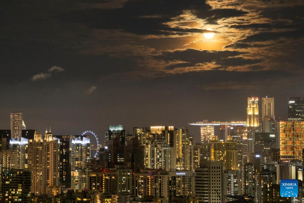 A full moon is observed in Singapore on April 13, 2025. (Xinhua/Then Chih Wey)
