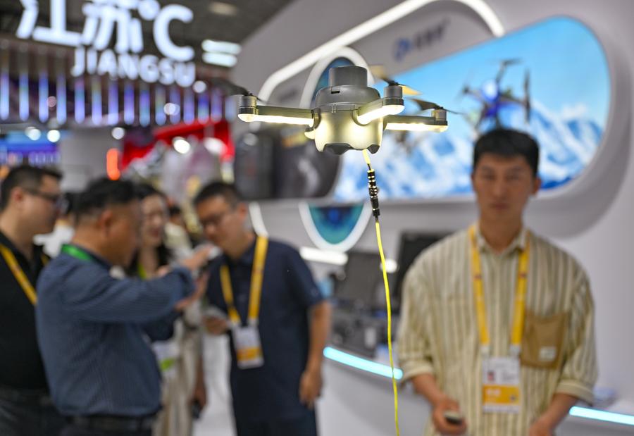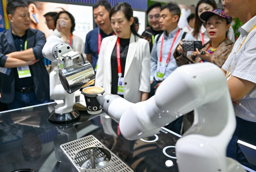 A robot is on display at the 5th China International Consumer Products Expo (CICPE) in Haikou, south China's Hainan Province, April 13, 2025. (Xinhua/Yang Guanyu)This photo taken on April 13, 2025 shows an exhibition area of China-made trendy products at the 5th China International Consumer Products Expo (CICPE) in Haikou, south China's Hainan Province. (Xinhua/Guo Cheng)An exhibitor demonstrates a multi-dimensional holographic AI sensory behavior research system for beauty products at the 5th China International Consumer Products Expo (CICPE) in Haikou, south China's Hainan Province, April 13, 2025. (Xinhua/Guo Cheng)An exhibitor demonstrates a tethered lighting drone at the 5th China International Consumer Products Expo (CICPE) in Haikou, south China's Hainan Province, April 13, 2025. (Xinhua/Guo Cheng)Visitors watch a robot making coffee at the 5th China International Consumer Products Expo (CICPE) in Haikou, south China's Hainan Province, April 13, 2025. (Xinhua/Guo Cheng)A visitor dressed in ancient costume interacts with a humanoid robot of Unitree Robotics at the 5th China International Consumer Products Expo (CICPE) in Haikou, south China's Hainan Province, April 13, 2025. (Xinhua/Zhang Liyun)This photo taken on April 13, 2025 shows a scene at the 5th China International Consumer Products Expo (CICPE) in Haikou, south China's Hainan Province. (Xinhua/Pu Xiaoxu)An exhibitor plays the piano with a smart prosthetic hand at the 5th China International Consumer Products Expo (CICPE) in Haikou, south China's Hainan Province, April 13, 2025. (Xinhua/Yang Guanyu)Visitors look at a flying car by Xpeng AeroHT at the 5th China International Consumer Products Expo (CICPE) in Haikou, south China's Hainan Province, April 13, 2025. (Xinhua/Yang Guanyu)Children interact with a robot dog displayed by Unitree Robotics at the 5th China International Consumer Products Expo (CICPE) in Haikou, south China's Hainan Province, April 13, 2025. (Xinhua/Yang Guanyu)This photo taken on April 13, 2025 shows the Hainan booth at the 5th China International Consumer Products Expo (CICPE) in Haikou, south China's Hainan Province. (Xinhua/Pu Xiaoxu)■