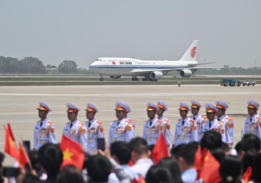 In a written statement upon his arrival at the Noi Bai International Airport in Hanoi, Xi said he was very pleased to start his fourth state visit to Vietnam at the invitation of General Secretary of the Communist Party of Vietnam (CPV) Central Committee To Lam and Vietnamese President Luong Cuong.