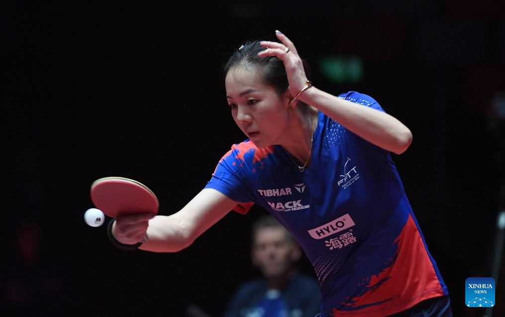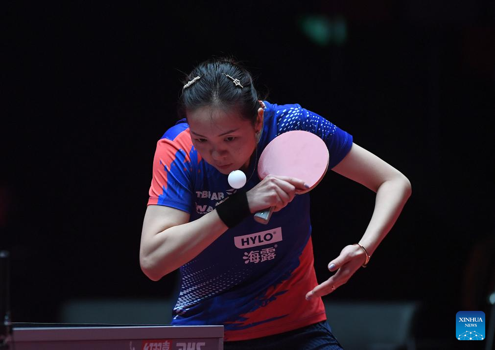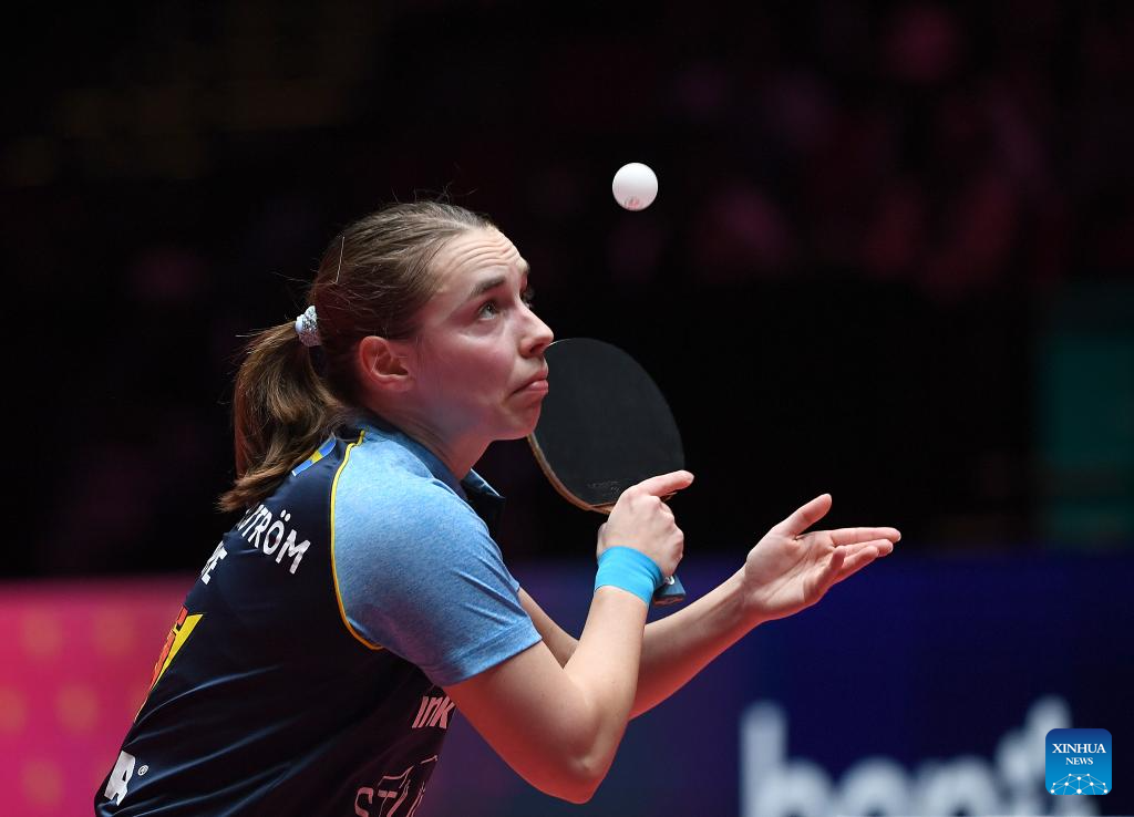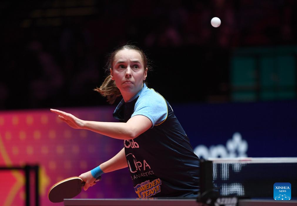 Linda Bergstrom hits a return during the women's singles group match between Wang Manyu of China and Linda Bergstrom of Sweden at the ITTF Men's and Women's World Cup 2025 in Macao, China, April 15, 2025. (Xinhua/Chen Duo)