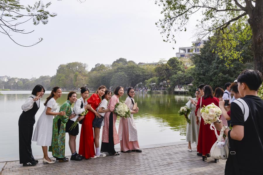 Tourists pose for a group photo at Hoan Kiem Lake, Hanoi, Vietnam, April 13, 2025. (Xinhua/Xu Qin)A couple poses for photos on the street in Hanoi, Vietnam, April 9, 2025. (Xinhua/Xu Rui)Photo taken on March 26, 2025 shows the Turtle Tower on Hoan Kiem Lake, in Hanoi, Vietnam. (Xinhua/Zhu Wei)Photo taken on March 24, 2025 shows the Van Mieu-Quoc Tu Giam (Temple of Literature) in Hanoi, Vietnam. (Xinhua/Zhu Wei)Tourists visit the Van Mieu-Quoc Tu Giam (Temple of Literature) in Hanoi, Vietnam, March 24, 2025. (Xinhua/Zhu Wei)Photo taken on March 24, 2025 shows a view of Ba Dinh Square in Hanoi, Vietnam. (Xinhua/Zhu Wei)Photo taken on April 9, 2025 shows a view of Long Bien Bridge, a historic bridge across the Red River, in Hanoi, Vietnam. (Xinhua/Xu Rui)■
