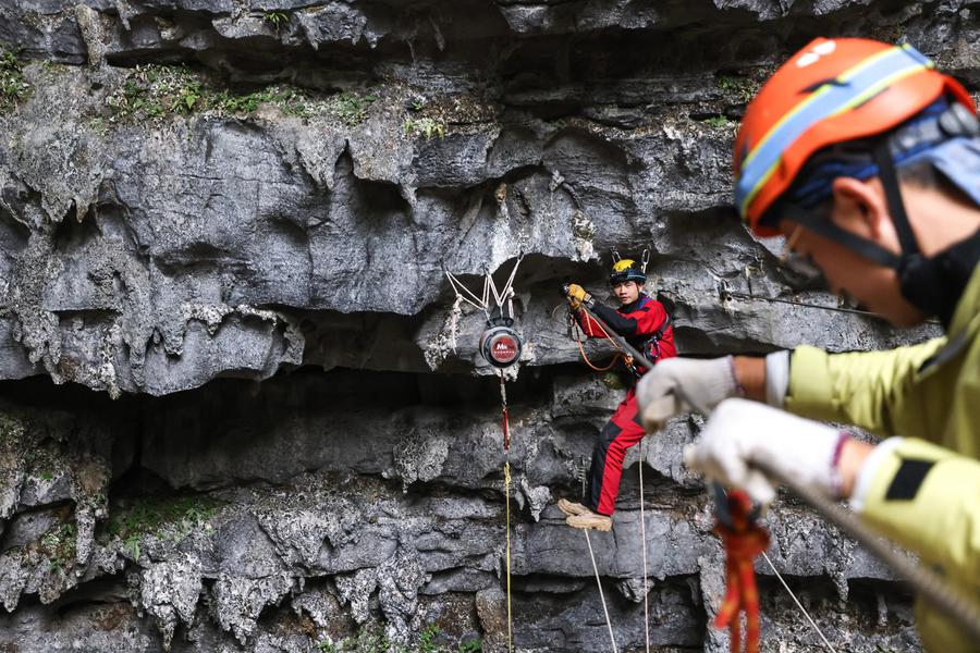 GUIYANG, April 15 (Xinhua) -- Located in Qiannan Buyi and Miao Autonomous Prefecture, southwest China's Guizhou Province, Pingtang County features higher terrain in the northwest and lower in the southeast, with a relative elevation difference of over 1,000 meters.