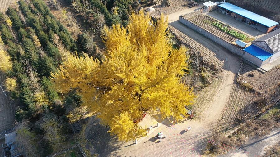Rising 30 meters in height with a trunk circumference of 7 meters, the tree is a cherished landmark in Jinji Village of Dalian City, Liaoning Province. It also serves as a natural weather indicator -- when its leaves begin to fall in late autumn, the locals know it's time to harvest their cabbages before the first frost of the year.
