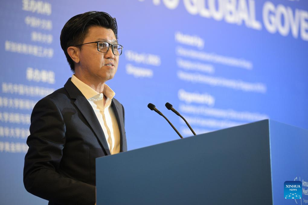 Chong Sin Woon, secretary-general of the Malaysian Chinese Association and former deputy minister of education in Malaysia, speaks at the 2025 Think Asia Forum in Singapore, April 15, 2025. (Xinhua/Then Chih Wey)