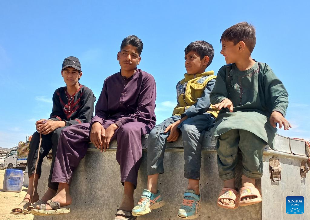 Afghan refugees arrive at the Torkham border crossing in Nangarhar province, Pakistan, on April 16, 2025. (Photo by Saeed Ahmad/Xinhua)