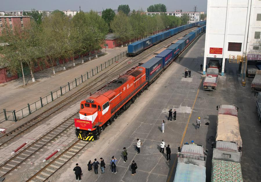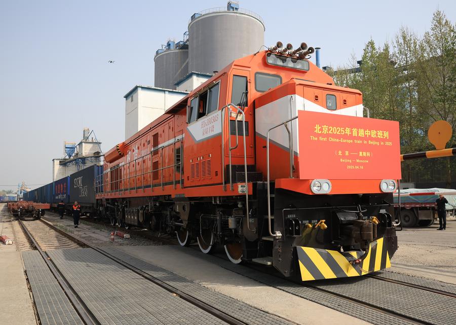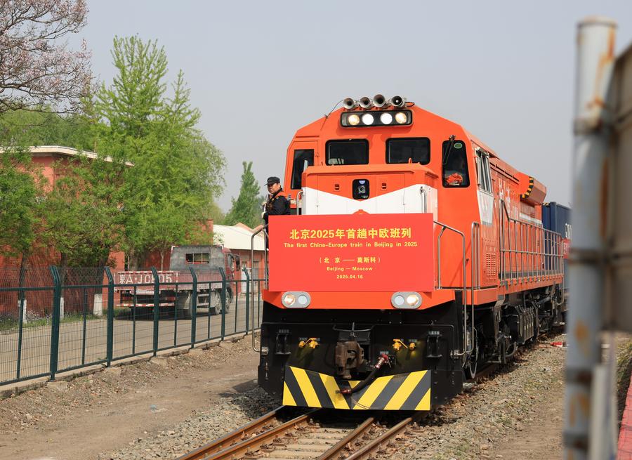 BEIJING, April 16 (Xinhua) -- Beijing on Wednesday sent its first China-Europe freight train in 2025. It is estimated that the train will cover a distance of about 9000 kilometers in 16 days.