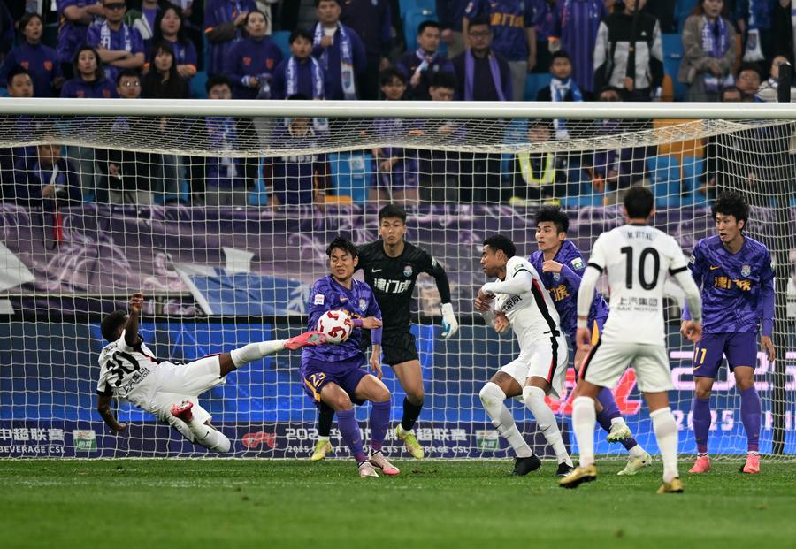 In other matches, Dalian Yingbo edged Henan FC 1-0, Shandong Taishan thrashed Qingdao West Coast 5-1, and Beijing Guoan played out a thrilling 4-4 draw with Wuhan Three Towns. Zhejiang FC and Meizhou Hakka drew 2-2, Shenzhen Peng City won over Changchun Yatai 3-1, while Chengdu Rongcheng and Yunnan Yukun shared the points in 1-1. ■
